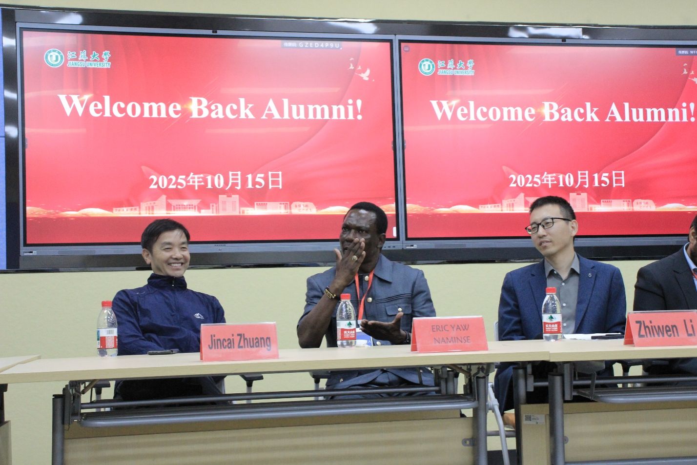 Chairman of the occasion, Prof. Zhiwen Li, alongside senior faculty members including Prof. Jincai Zhuang and Vice Dean Mr. Wang Bing of the Overseas Education College, presided over a session that quickly moved beyond platitudes. Dr. Eric Yaw Naminse (Class of 2016) set a powerful tone by grounding his success in a narrative of relentless discipline. He candidly recounted the grueling schedule of his PhD years, where his commitment was measured by the arrival and departure of his professor. “I made it a rule to be seated before my professor arrived in the morning, and I would not leave until he had departed, often as late as 11 PM,” Dr. Naminse shared. What he once perceived as an ordeal, he now recognizes as the foundational training for professional excellence, instilling in him an unwavering sense of punctuality and the stamina for long, focused work.